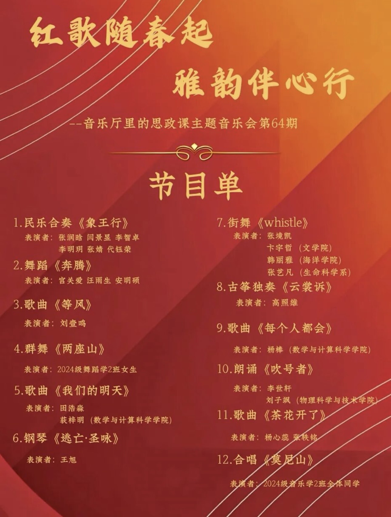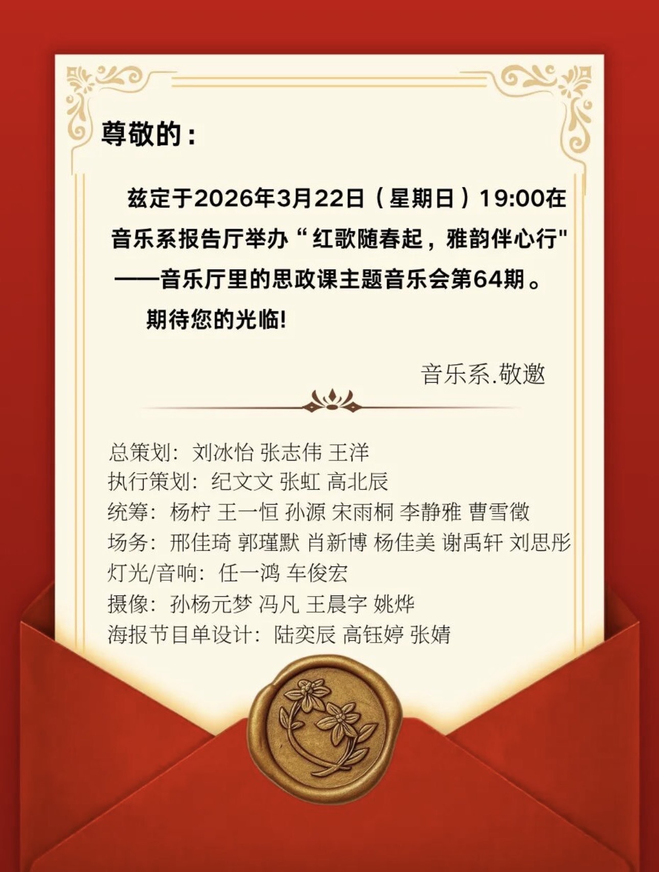 音乐会预告|“红歌随春起,雅韵伴心行”——音乐厅里的思政课主题音乐会第64期